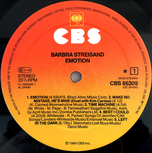 Label: CBS - Cat#: 86309