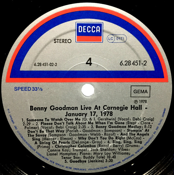 Vinyl / Benny Goodman - Live At Carnegie Hall 40th Anniversary Concert