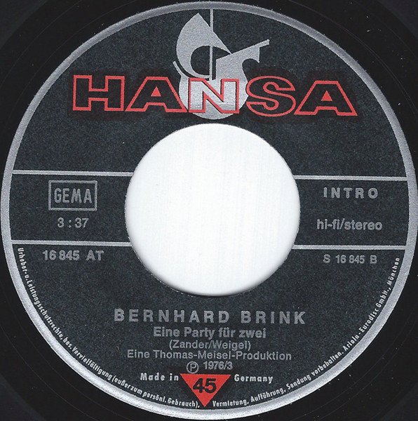 Label: Hansa - Cat#: 16 845 AT