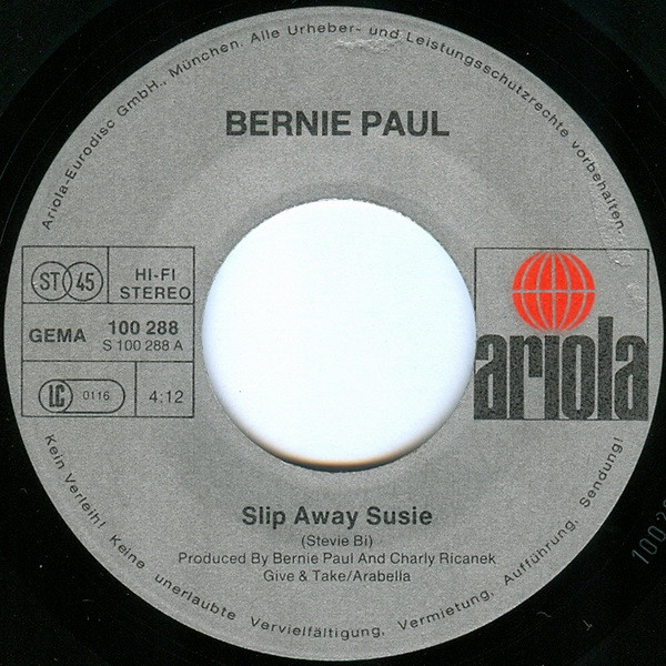 Vinyl / Bernie Paul - Slip Away Susie / Down At The Truck Stop