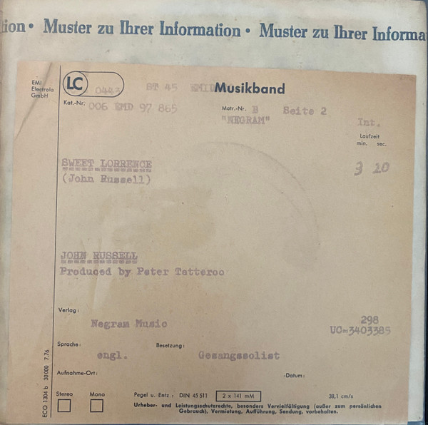 Format: Vinyl, 7", 45 RPM, Single, Test Pressing