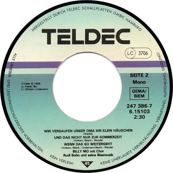 Vinyl / Billy Mo - Humbta-Täterä / Wir Versaufen Unser Oma Ihr Klein Häuschen