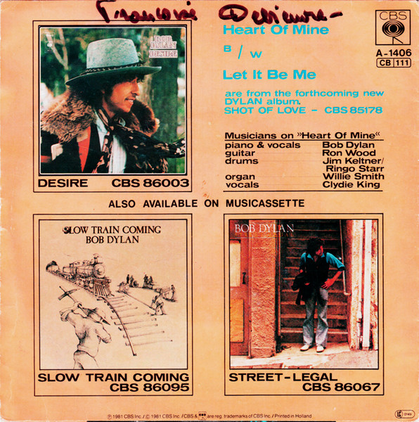Vinyl / Bob Dylan - Heart Of Mine / Let It Be Me