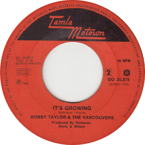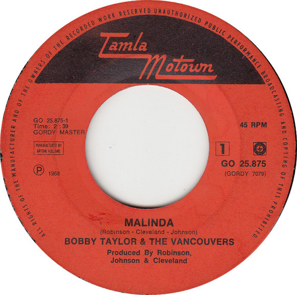 Vinyl / Bobby Taylor & The Vancouvers - Malinda / It's Growing