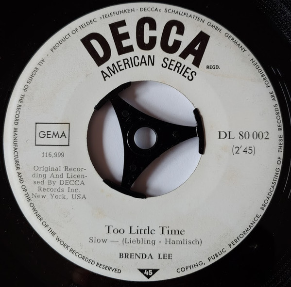 Vinyl / Brenda Lee - Too Little Time / Time And Time Again
