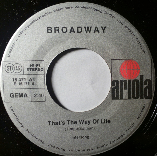 Vinyl / Broadway (23) - Hello Corinna / That's The Way Of Life