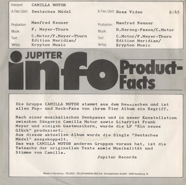Vinyl / Camilla Motor - Deutsches Mädel