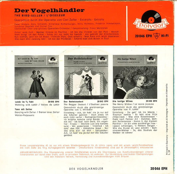 Vinyl / Carl Zeller - Der Vogelhändler (Querschnitt Durch Die Operette)