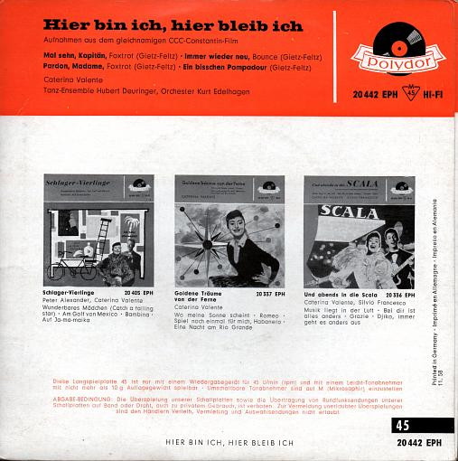 Vinyl / Caterina Valente - Hier Bin Ich, Hier Bleib Ich