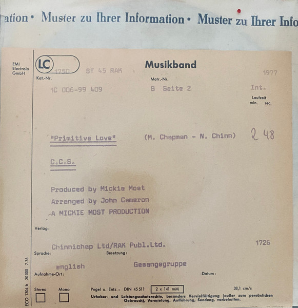 Format: Vinyl, 7", 45 RPM, Single, Test Pressing