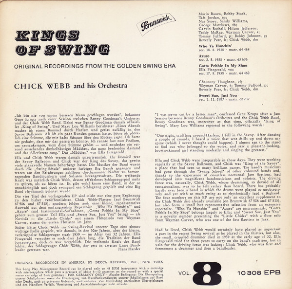 Vinyl / Chick Webb And His Orchestra With Ella Fitzgerald - Kings Of Swing Vol. 8