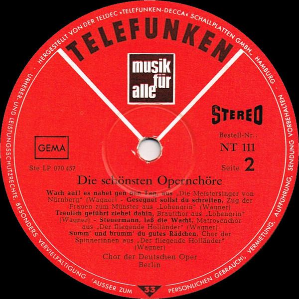 Label: Telefunken - Cat#: NT 111