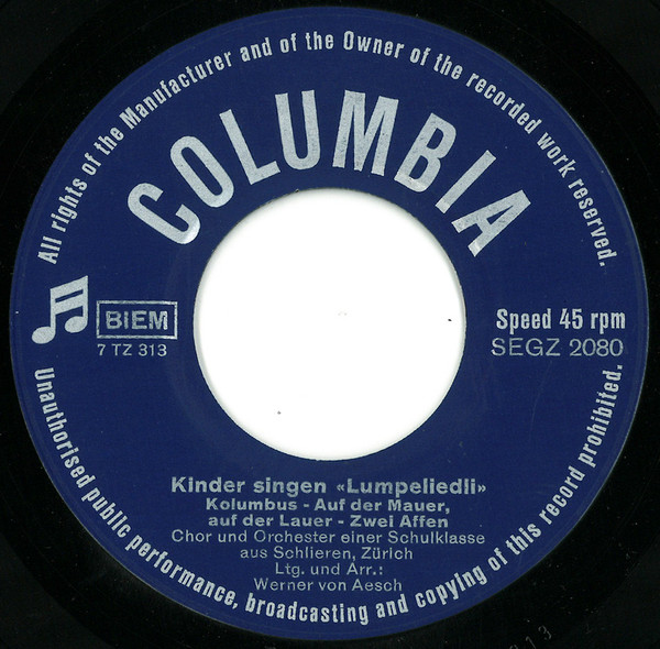 Label: Columbia - Cat#: SEGZ 2080
