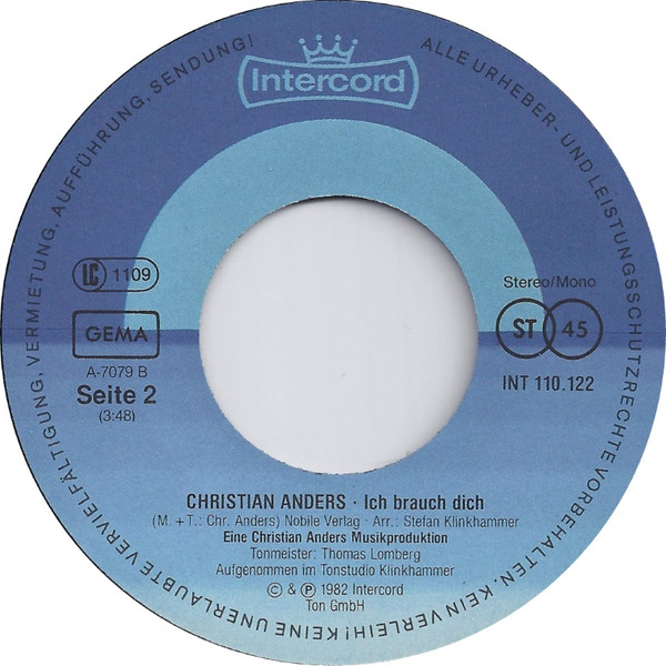 Vinyl / Christian Anders - Jenny Komm Heim