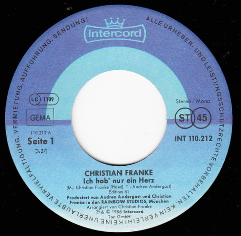 Vinyl / Christian Franke - Ich Hab' Nur Ein Herz
