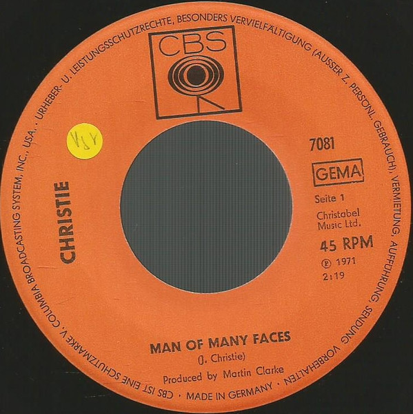 Vinyl / Christie - Man Of Many Faces / Country Sam