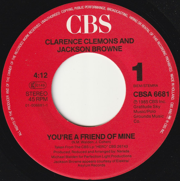 Vinyl / Clarence Clemons And Jackson Browne - You're A Friend Of Mine