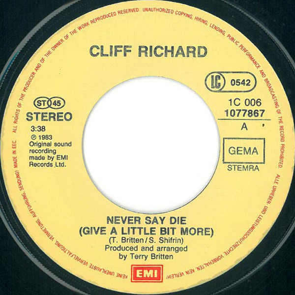Vinyl / Cliff Richard - Never Say Die (Give A Little Bit More)