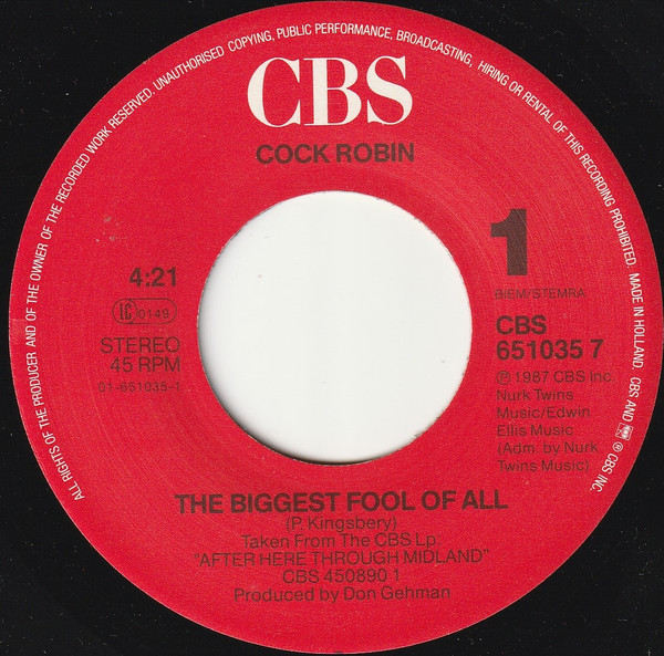 Vinyl / Cock Robin - The Biggest Fool Of All