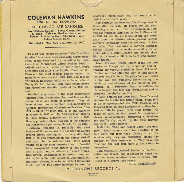 Vinyl / Coleman Hawkins, The Chocolate Dandies - King Of The Tenor Sax