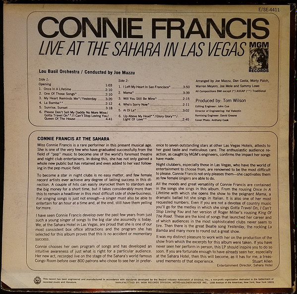 Vinyl / Connie Francis - Live At The Sahara In Las Vegas