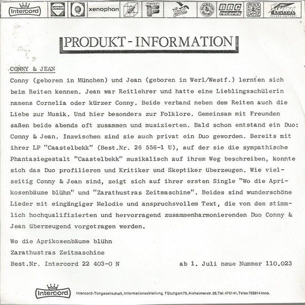 Vinyl / Conny & Jean - Wenn Die Aprikosenbäume Blühn / Zarathustras Zeitmaschine