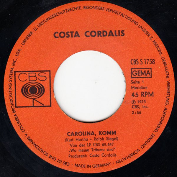 Vinyl / Costa Cordalis - Carolina, Komm