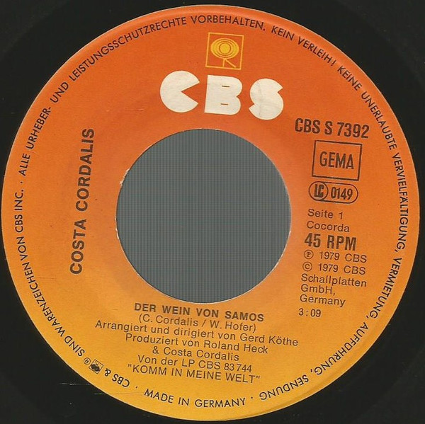 Vinyl / Costa Cordalis - Der Wein Von Samos