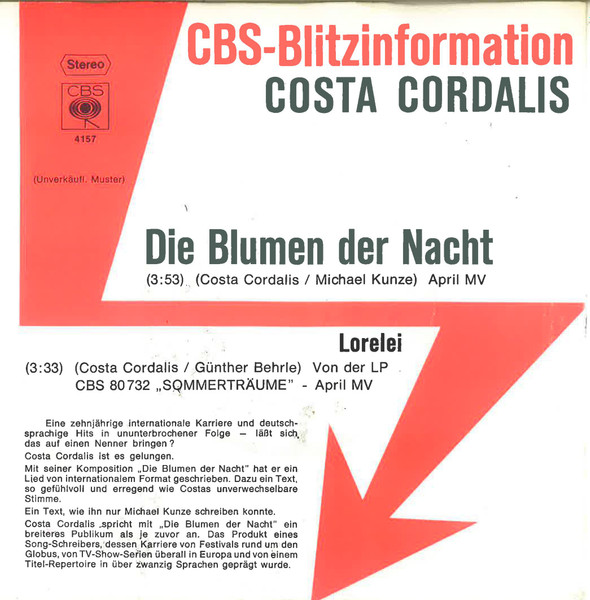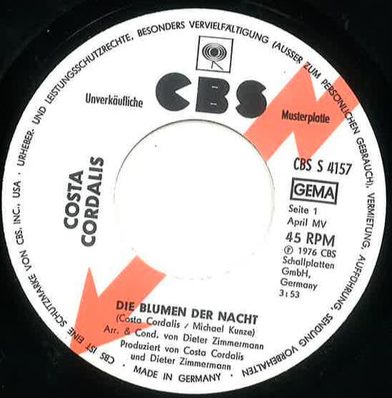 Vinyl / Costa Cordalis - Die Blumen Der Nacht