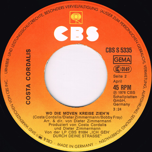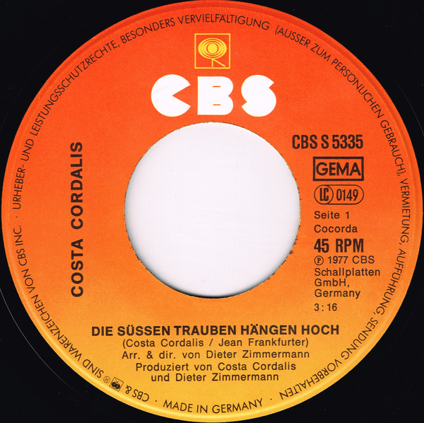 Vinyl / Costa Cordalis - Die Süßen Trauben Hängen Hoch