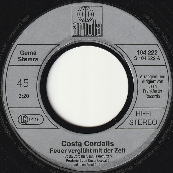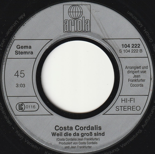 Vinyl / Costa Cordalis - Feuer Verglüht Mit Der Zeit / Weil Die Da Groß Sind