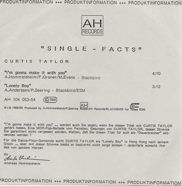 Vinyl / Curtis Taylor (4) - Lonely Boy