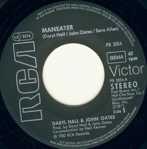 Vinyl / Daryl Hall + John Oates* - Maneater B/W Delayed Reaction