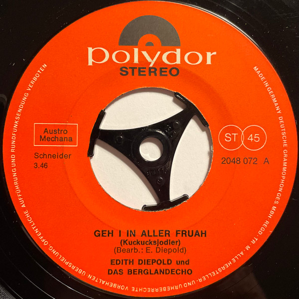 Vinyl / Das Berglandecho*, Edith Diepold - Geh I In Aller Fruah / Jodler In Den Bergen