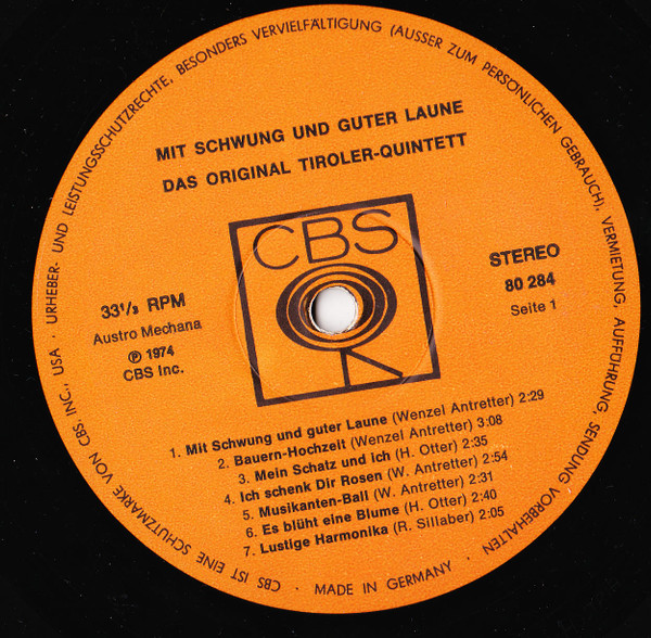 Vinyl / Das Original Tiroler Quintett* - Mit Schwung Und Guter Laune