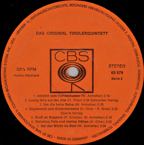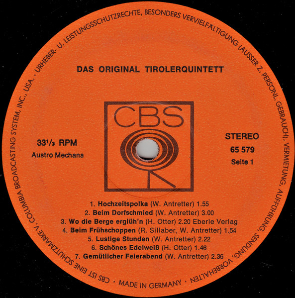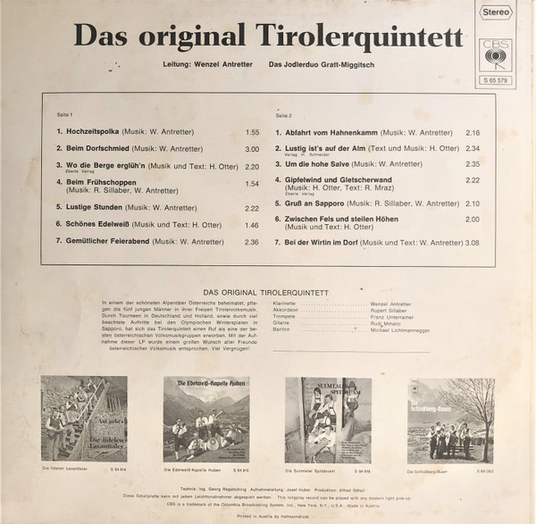 Vinyl / Das Original Tirolerquintett* - Beim Dorfschmied