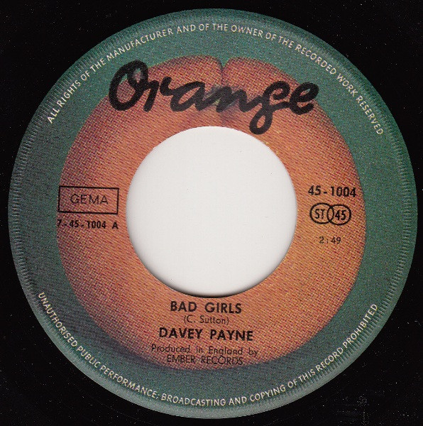 Vinyl / Davey Payne (2) - Bad Girls / Why Can't I Be Your Man?