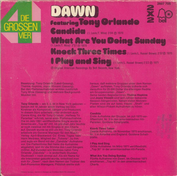 Vinyl / Dawn (5) Feat. Tony Orlando - Die Grossen Vier