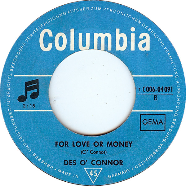 Vinyl / Des O'Connor - Dick-A-Dum-Dum / For Love Or Money