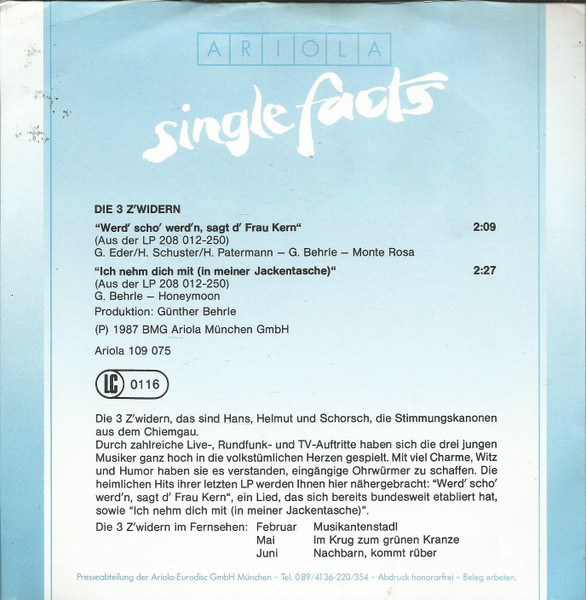 Vinyl / Die 3 Z'widern - Werd Scho' Werd'n, Sagt D'Frau Kern