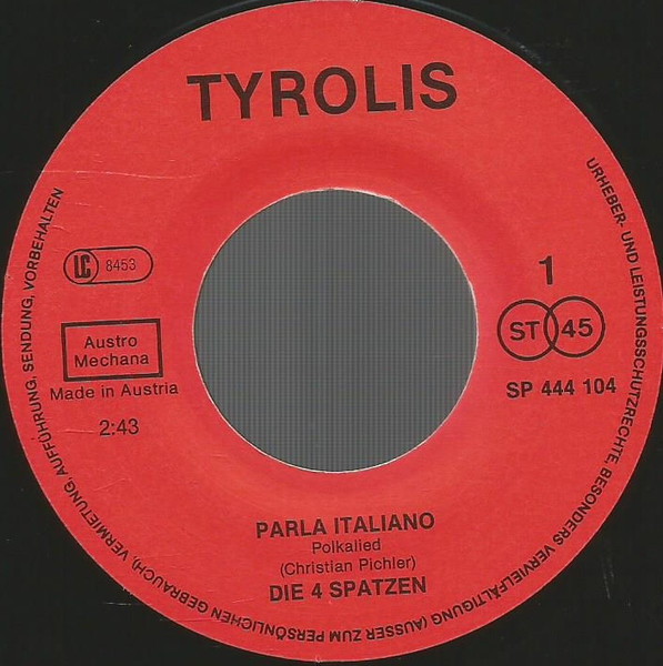 Vinyl / Die 4 Spatzen Aus Tirol - Parla Italiano / Die Botschaft Der Berge
