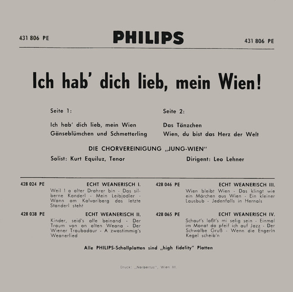 Vinyl / Die Chorvereinigung Jung-Wien - Ich hab' dich lieb, mein Wien