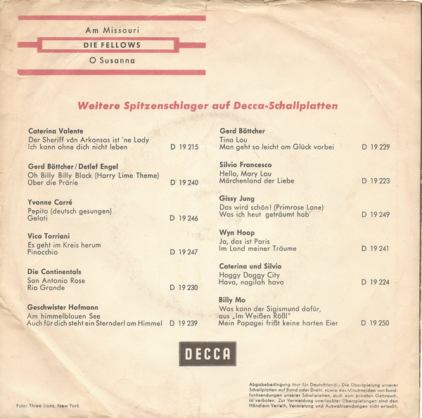 Vinyl / Die Fellows - Am Missouri / Oh, Susanna