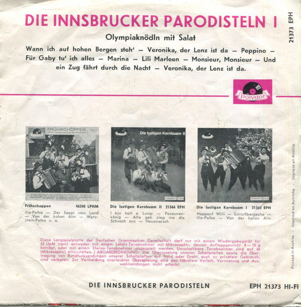 Vinyl / Die Innsbrucker Parodisteln* - Olympia-Knödln Mit Salat