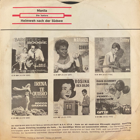 Vinyl / Die Juniors - Manila / Heimweh Nach Der Südsee
