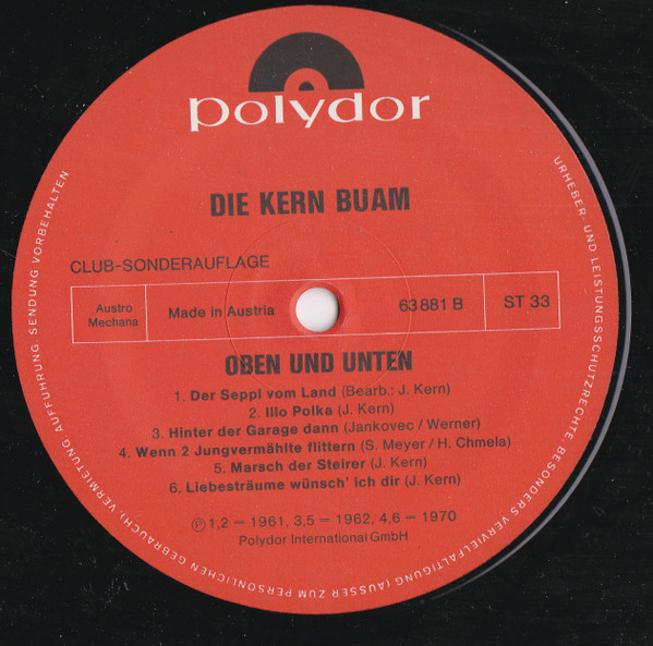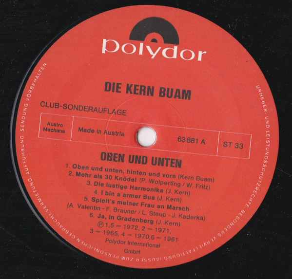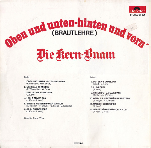 Vinyl / Die Kern-Buam* - Oben Und Unten, Hinten Und Vorn' (Brautlehre)