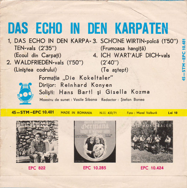 Vinyl / Die Kokeltaler, Hans Bartl Und Gisella Kozma - Das Echo In Den Karpaten