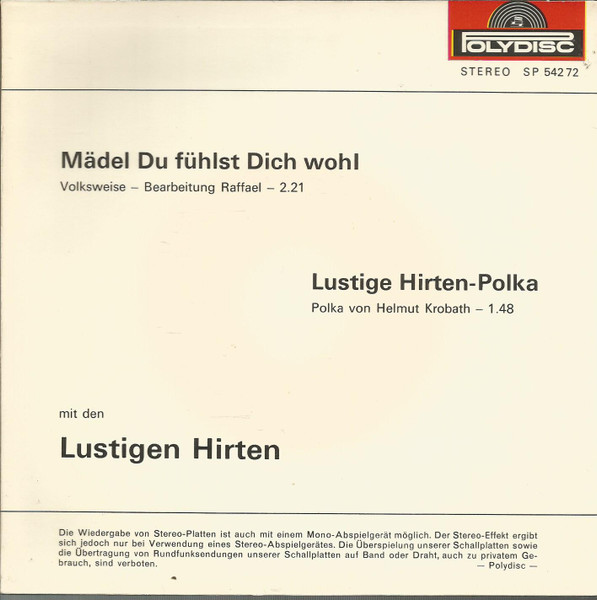 Vinyl / Die Lustigen Hirten - Mädel Du Fühlst Dich Wohl / Lustige Hirten-Polka