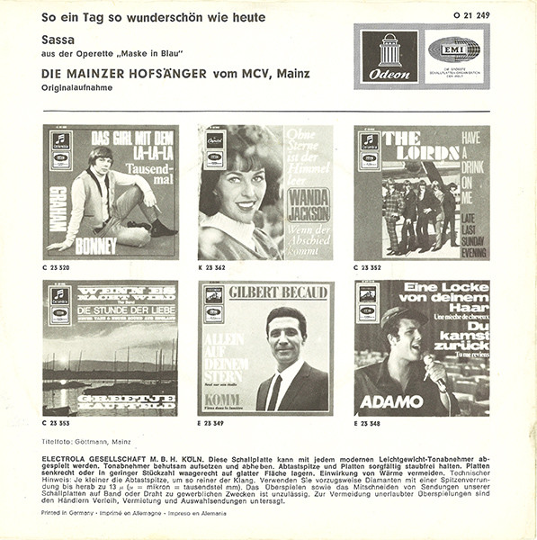 Vinyl / Die Mainzer Hofsänger - So Ein Tag So Wunderschön Wie Heute / Sassa