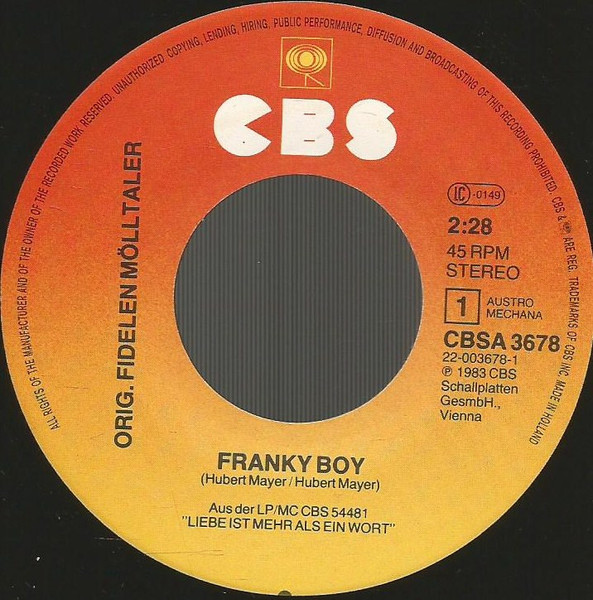 Vinyl / Die Orig. Fidelen Mölltaler* - Franky Boy